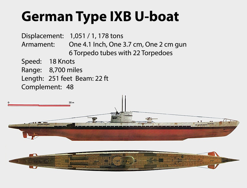 The type IXB German submarine was creeping forwards ever so slowly, under the almost pitch black night sky. The crew couldn’t hear any other sound except for the low hum of the sub’s electric motor.