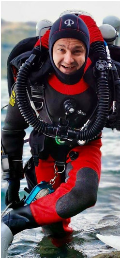 Alessandro had his first dive at 6 years old, and his first scuba certification at 12. At 18 years old, he already was a recreational diving instructor. In 1996, he had his military underwater certification with “Com.Sub.In” from the Italian Navy. In 1997, he achieved his first technical instructor certification. Using Rebreather from the very beginning, he experienced lots of hours on different machines. Next to that Alessandro is an OTS (Commercial Diver), Hyperbaric Chamber Operator, R.O.V. pilot, UW submarine pilot. Now he is the vice chief of Napoli’s section of the underwater team of the Italian Police. He is also the chief executive officer of Deep Sea Technology (commercial diving company). Alessandro is Instructor Trainer for PTA/CMAS, NASE and PSA. Contact: