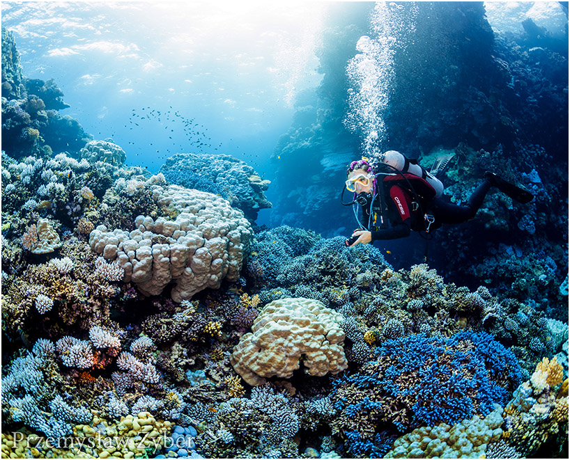 Some people take a nap before the next - third dive. The afternoon dive is like the previous one. The sun is still high, so we enjoy the wonderful colors underwater. During afternoon dives, there is a stronger current. In such situations, a zodiac (a small pontoon motorboat) takes us to the other end of the reef.