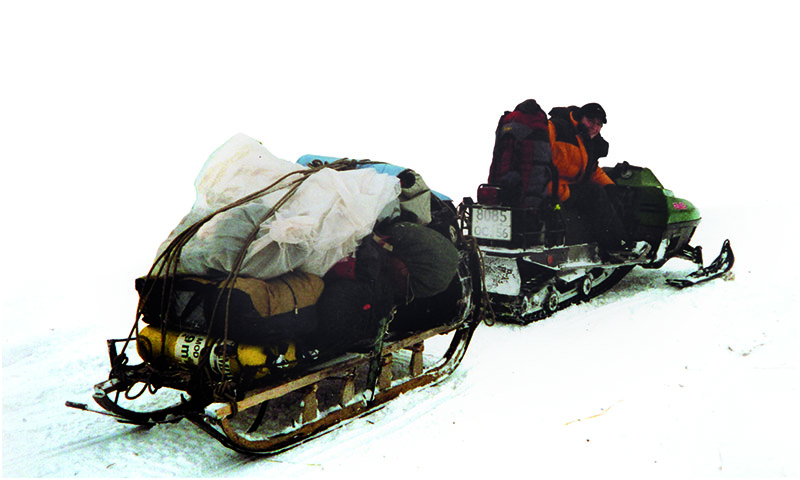 Alex had decided that having been to Russia twice now that the next trip the following February would be somewhere cold! So after another four-day drive, I found myself loading dive gear onto a sledge for a 12-hour journey up the frozen and snow covered White River to the base camp for our next dive site. This time we had driven East to the Ural mountain range that separates Europe and Asia. Air temperature varied between –20ºC/4ºF and –40ºC/-40ºF and when we finally arrived, the resurgence sump we were to dive had a water temperature of 2ºC/35ºF.
