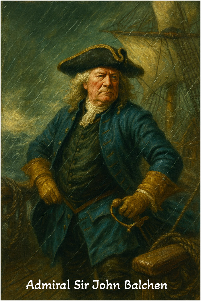 On the quarterdeck, Admiral Balchen stood squarely at the weather rail, one gloved hand resting on the carved lion’s-head of the rail, the other holding his hat firm to his head. The salt had soaked his greatcoat; it ran down his face in rivulets, mixed with rain and spray, but he neither blinked nor turned away. He had served the Crown since before most of his crew had drawn breath. He knew the sea—knew its moods, its caprices, its wrath.